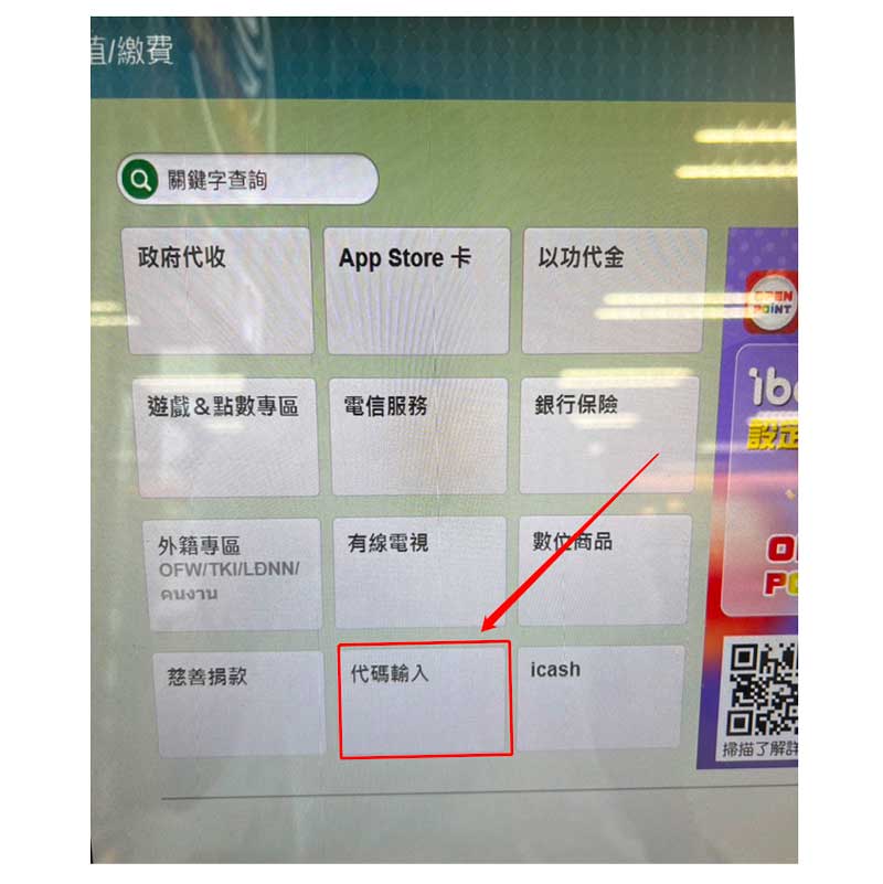 輸入客服提供的超商代碼